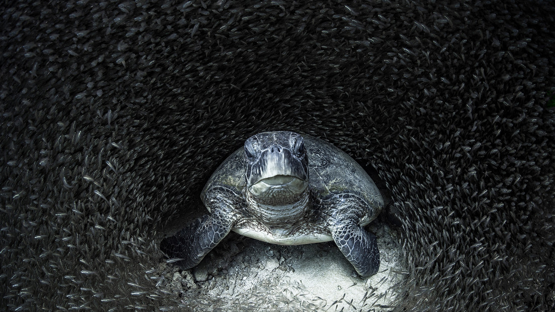 La imagen de una tortuga marina verde rodeada de peces de cristal tomada en el arrecife de Ningaloo, en Australia Occidental, por la fotógrafa Aimee Jan, se ha impuesto en el concurso internacional Ocean Photography de este año, cuyos ganadores fueron anunciados recientemente.