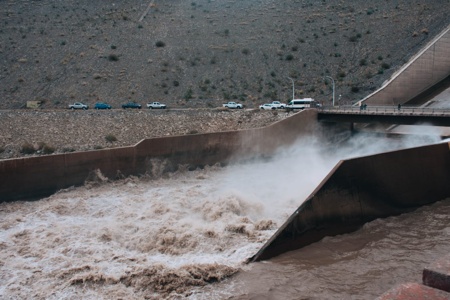 Este miércoles se limpió el fondo del descargador del Dique de Ullum, tarea que consiste en la apertura de la válvula en su mayor diámetro a fin de que la fuerza de la corriente arrastre todos los sedimentos a su paso. La liberación de agua también significó un espectáculo poco habitual.