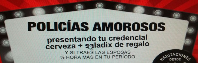 Para los policías la promoción ofrece cerveza y galletas de regalo si presentan la placa que demuestre que son oficiales de las fuerzas de seguridad y media hora de regalo en el turno si llevan las esposas al telo guaymallino.