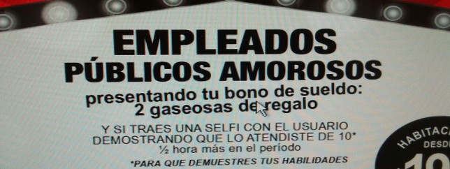 La promoción para los empleados públicos, por su parte, propone dos gaseosas de regalo si llevan su bono de sueldo y media hora de regalo si llevan una "selfie" con algún ciudadano a quien hayan atendido "de 10".
