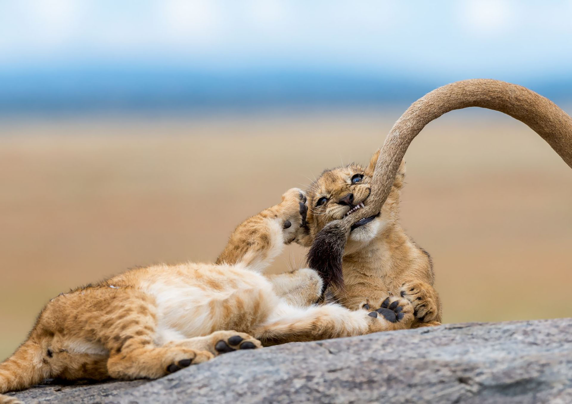 Dos leones cachorros en Serengeti