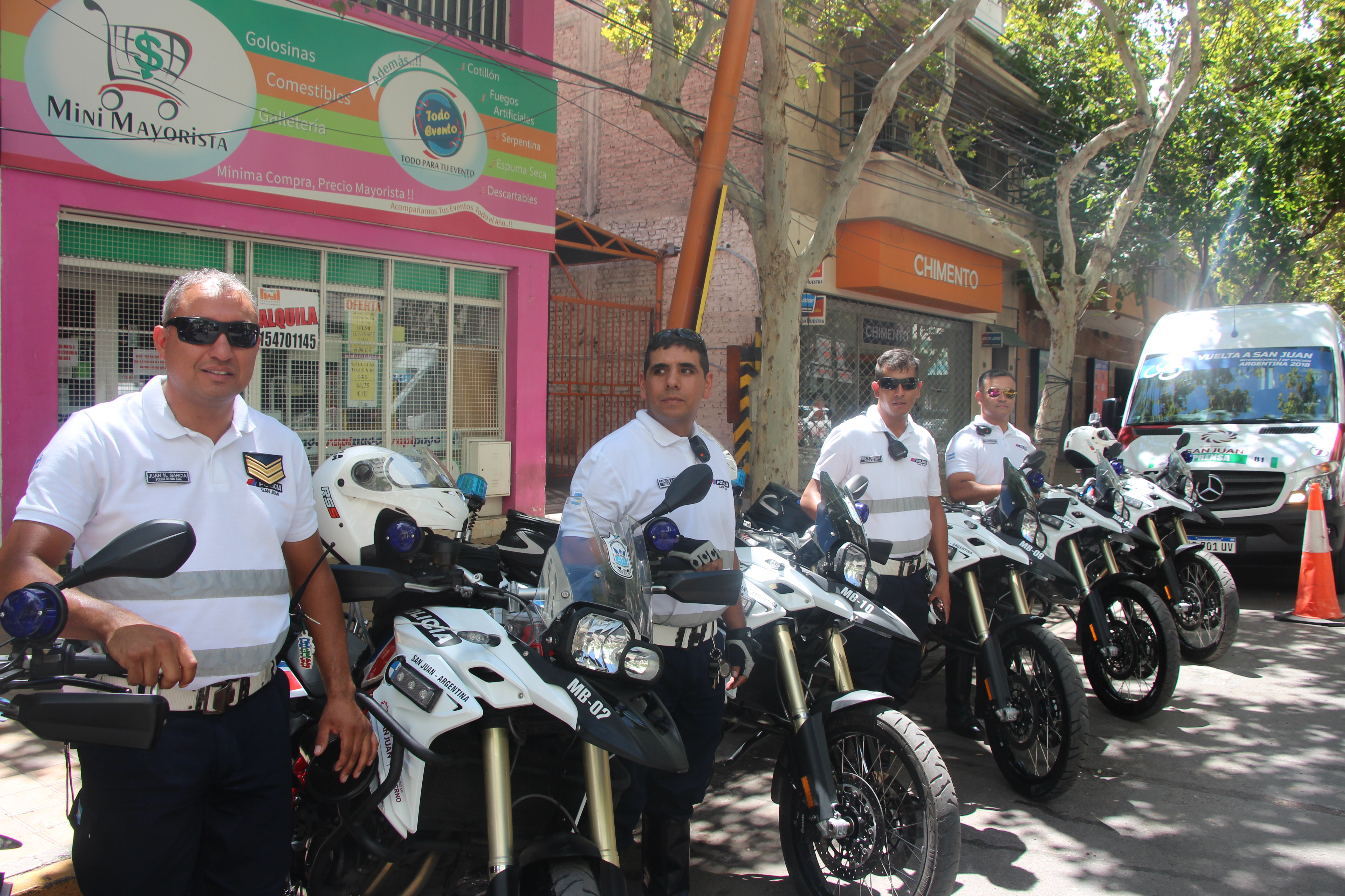 1. Gran operativo policial. Una gran cantidad de efectivos policiales de diferentes fuerzas siguen de cerca la carrera para garantizar la seguridad de los protagonistas. La mayoría de ellos se moviliza en motos.