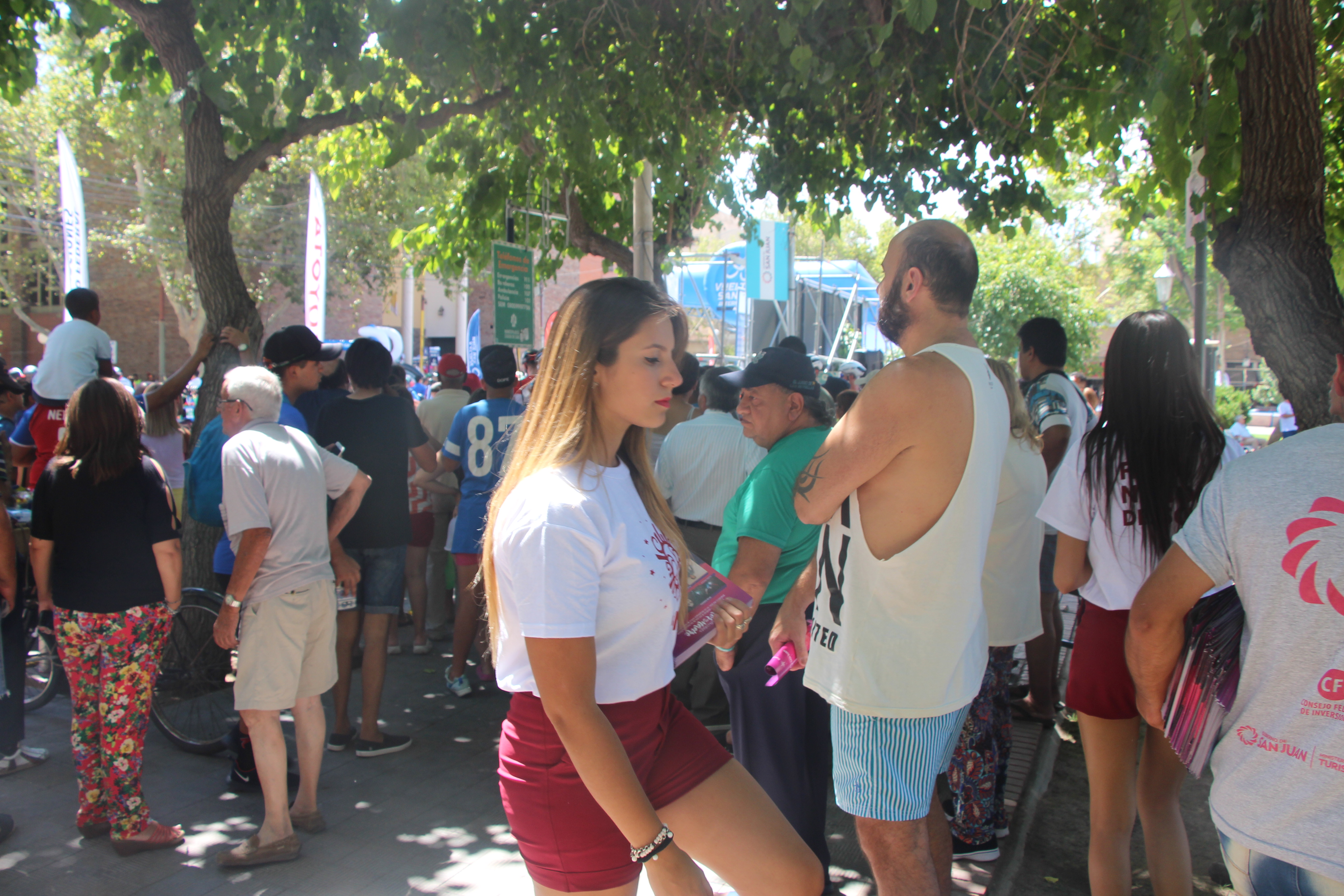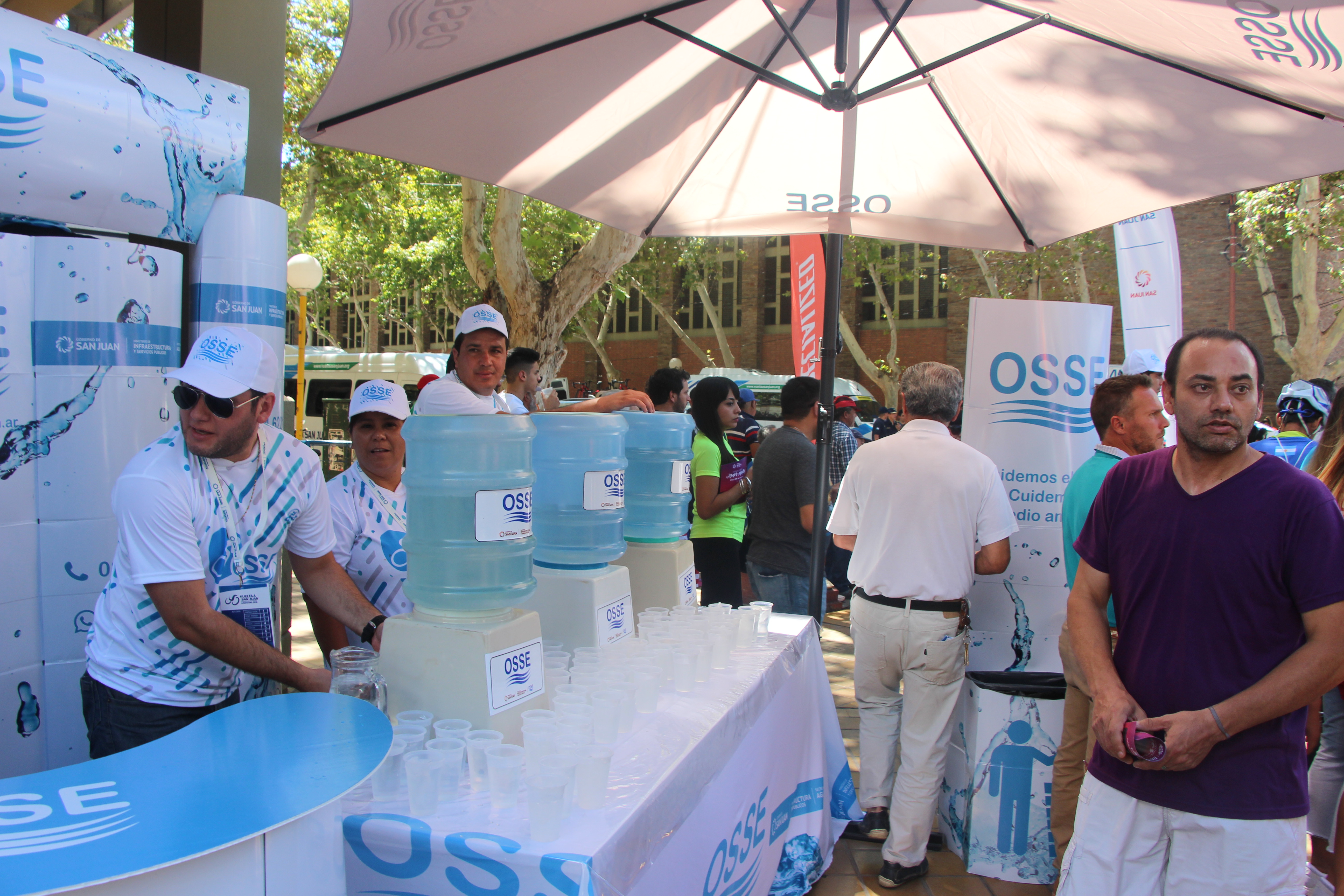 2. Agua. Un puesto de OSSE se montó en la vereda de calle Mendoza e Ignacio de la Roza para proveer agua fresca a los presentes. El calor fue uno de los principales protagonistas de la tarde.