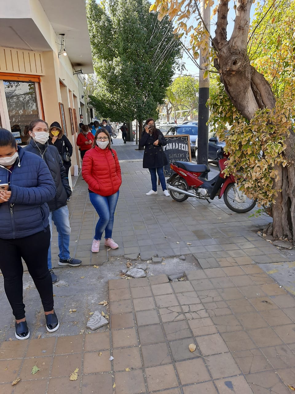 En San Juan al menos tres de esos lugares se muestran a diario con largas filas de gente al ingreso y ningún control de parte de las empresas o de la policía, quedando todo en manos de la gente que asiste.