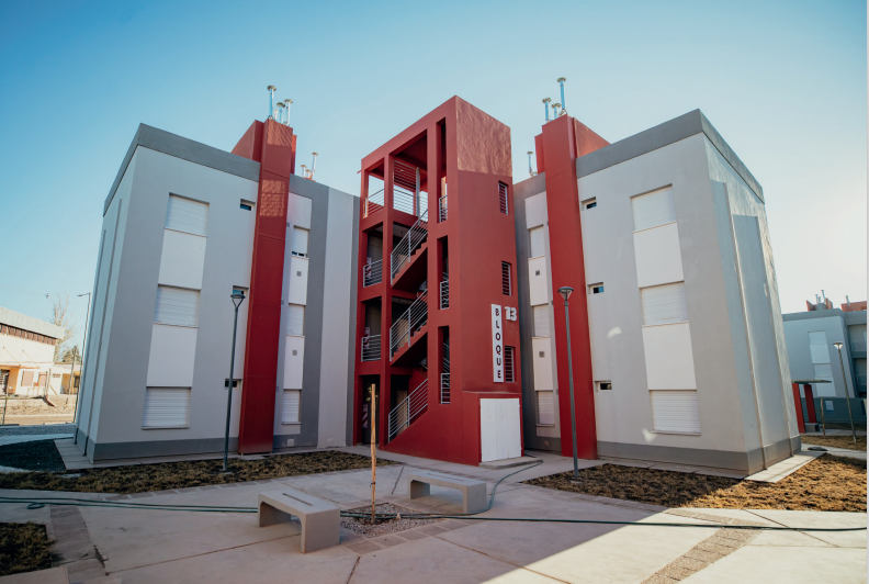 Ubicados en una zona residencial muy valorada en el Gran San Juan, estos departamentos constan de 3 dormitorios, cocina-comedor y baño equipado. Cada uno cuenta con una superficie de 68 metros cuadrados. Una particularidad de los espacios comunes es que se edificó un playón polideportivo..