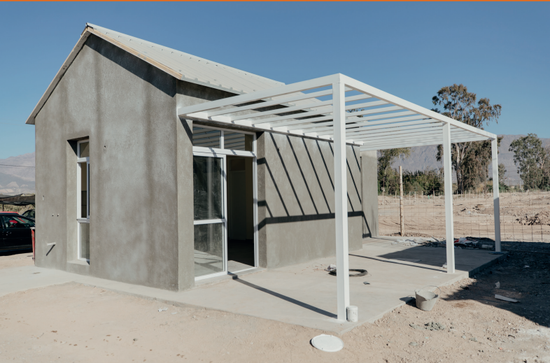 Las viviendas son de casi 62 metros cuadrados y constan de cocina-comedor, baño (equipado con todos los artefactos) y 2 dormitorios. La carpintería de las ventanas (con tela mosquitera) es de aluminio y las puertas de madera , con marco metálico. El barrio contará con redes de alumbrado público, cloacas y gas natural.