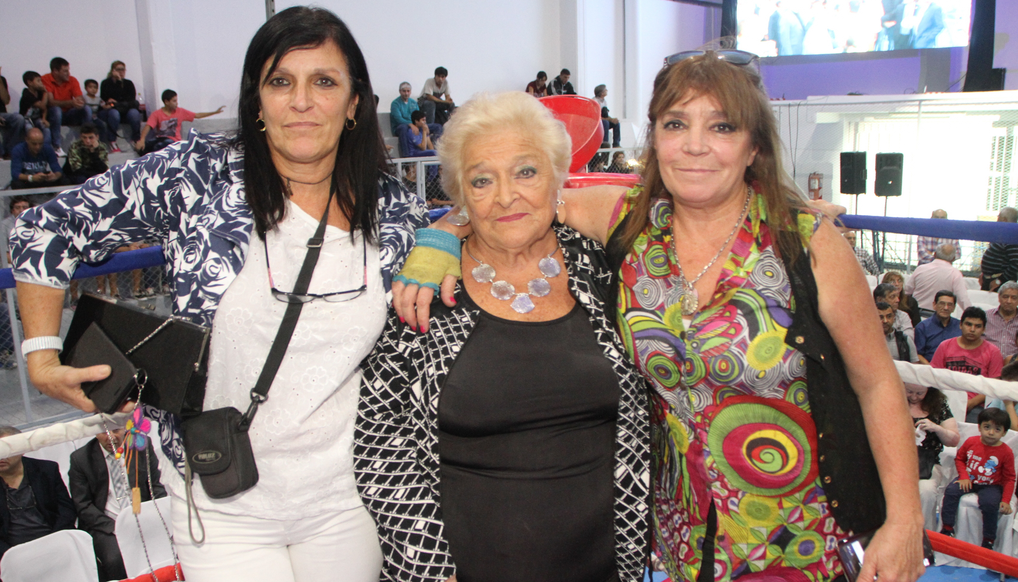 Familiares directos del campeón. La señora Hebe Mocoroa, hija de quien lleva el nombre el club, junto a sus hijas.