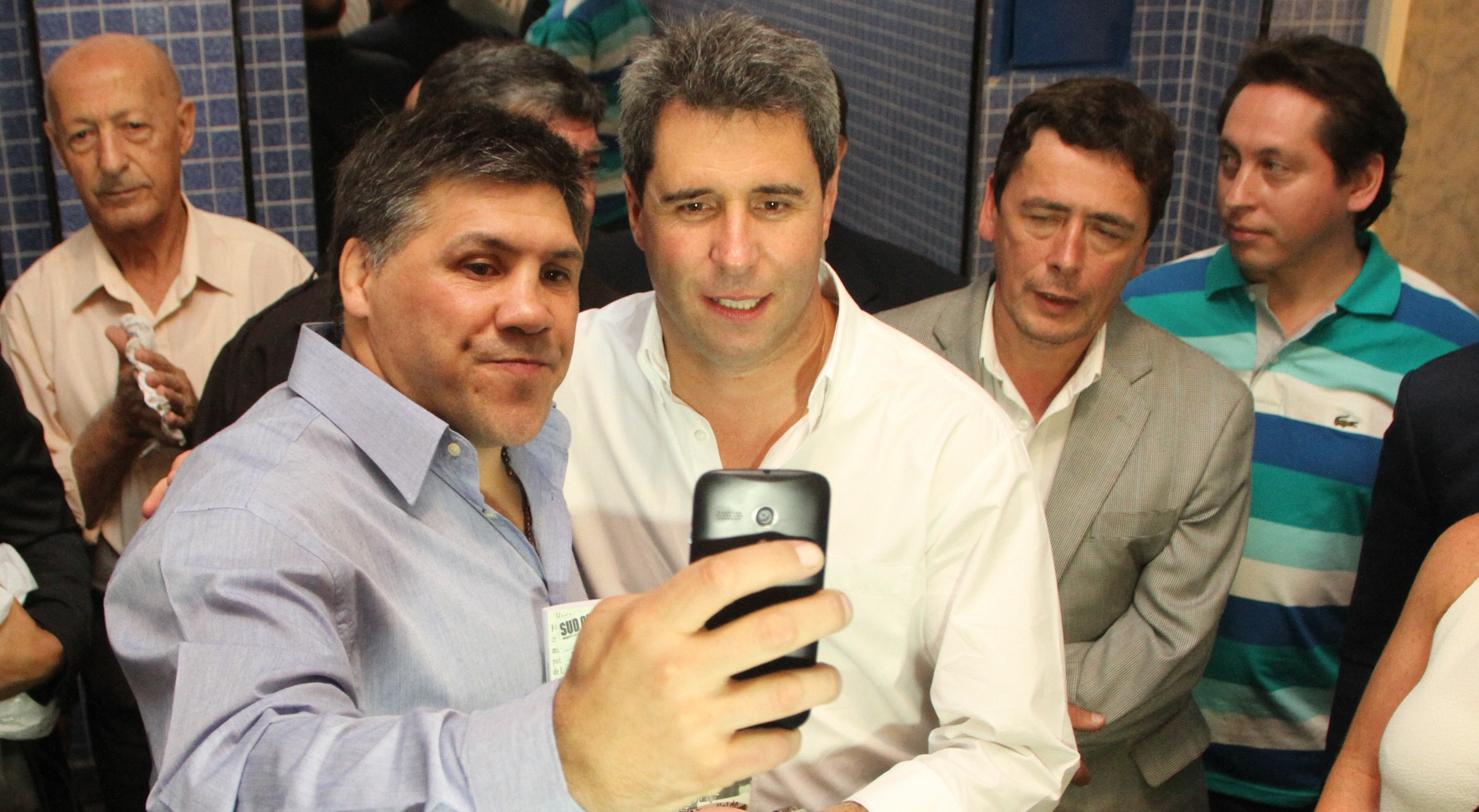 La Selfie. El ex campeón mundial Marcelo Domínguez se llevó de recuerdo en su teléfono móvil una foto con el gobernador de la provincia, Sergio Uñac.