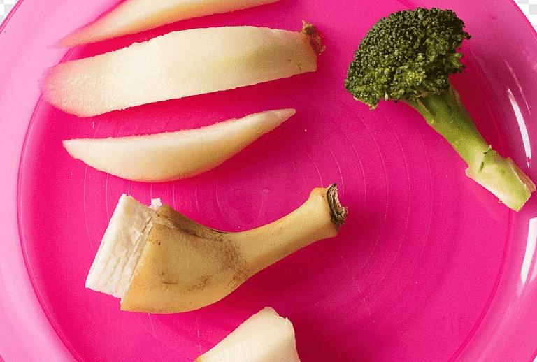 La Alimentación Complementaria o Autorregulada es ofrecerle al bebé uno, dos o tres alimentos de acuerdo a la edad que tenga- en el plato. Se van probando sabores nuevos por día o cada dos días. Y es el niño el que elige cuál se va a comer primero. No distinguimos entre plato principal y postre, sino que podemos ofrecerle a la vez bastones de zapallo al horno o vapor, un pedazo de palta, un tomate sin cáscara, un trozo de banana. La porción de cada alimento es algo cuidado: son trozos grandes o bastones o cilindros de 10 centímetros de largo, 2 de ancho y 2 de alto, como si fuese casi una banana pequeña. Es así porque, al no poder hacer pinza con sus dedos índice y pulgar, el bebé no puede agarrar pedazos pequeños, entonces toma a mano llena. De hecho, con estos tamaños le queda la mitad de la comida dentro de su palma y la otra mitad por fuera, que es lo que se va a llevar a su boca.