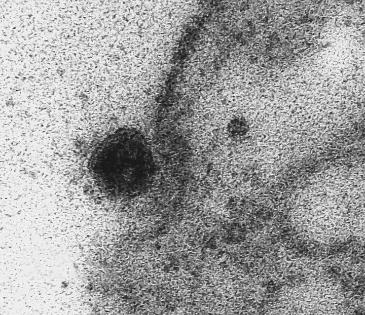 En una de las instantáneas se observa una serie de puntos oscuros, que en realidad son partículas virales del patógeno, intentando infectar el citoplasma de la célula, en cuyo interior se encuentra el núcleo, responsable de guardar el material genético.