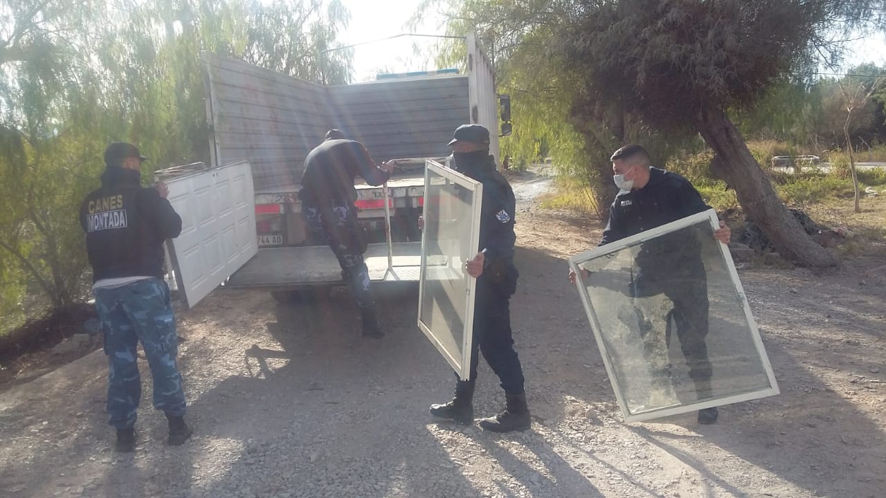 Había metros de cable, un portón, un rollo de nylon de bordeadora, un matafuego, un inodoro, 4 hojas de ventana de vidrio, una puerta de chapa, un taladro, un escalera y 4 tarros de pintura. También, detuvieron a un joven de 20 años, identificado como Kevin Núñez, y quedó a disposición de la justicia.