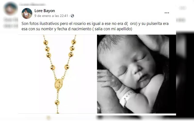 En el mismo posteo aclara que lo único que lamenta y que desea recuperar es la nombrada cajita, “donde guardaba como un gran tesoro el rosario (Q no era de oro ni plata) el cordón umbilical y la pulserita q usó mi hijita (fallecida )”, lamentó Lorena.