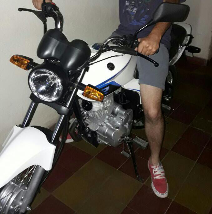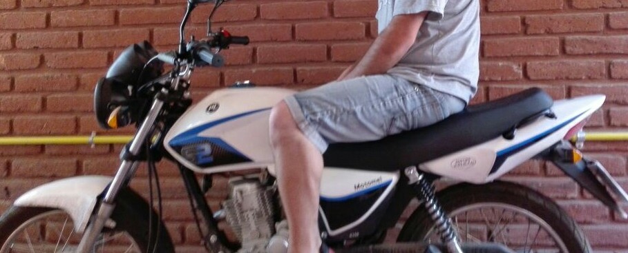 Se trata de una Motomel Custom 150 cc, modelo 2017, patente AO21FOM y como se puede advertir en las imágenes es de color blanco con detalles azules. Según el propietario, es su medio de transporte y también la utiliza para trabajar.