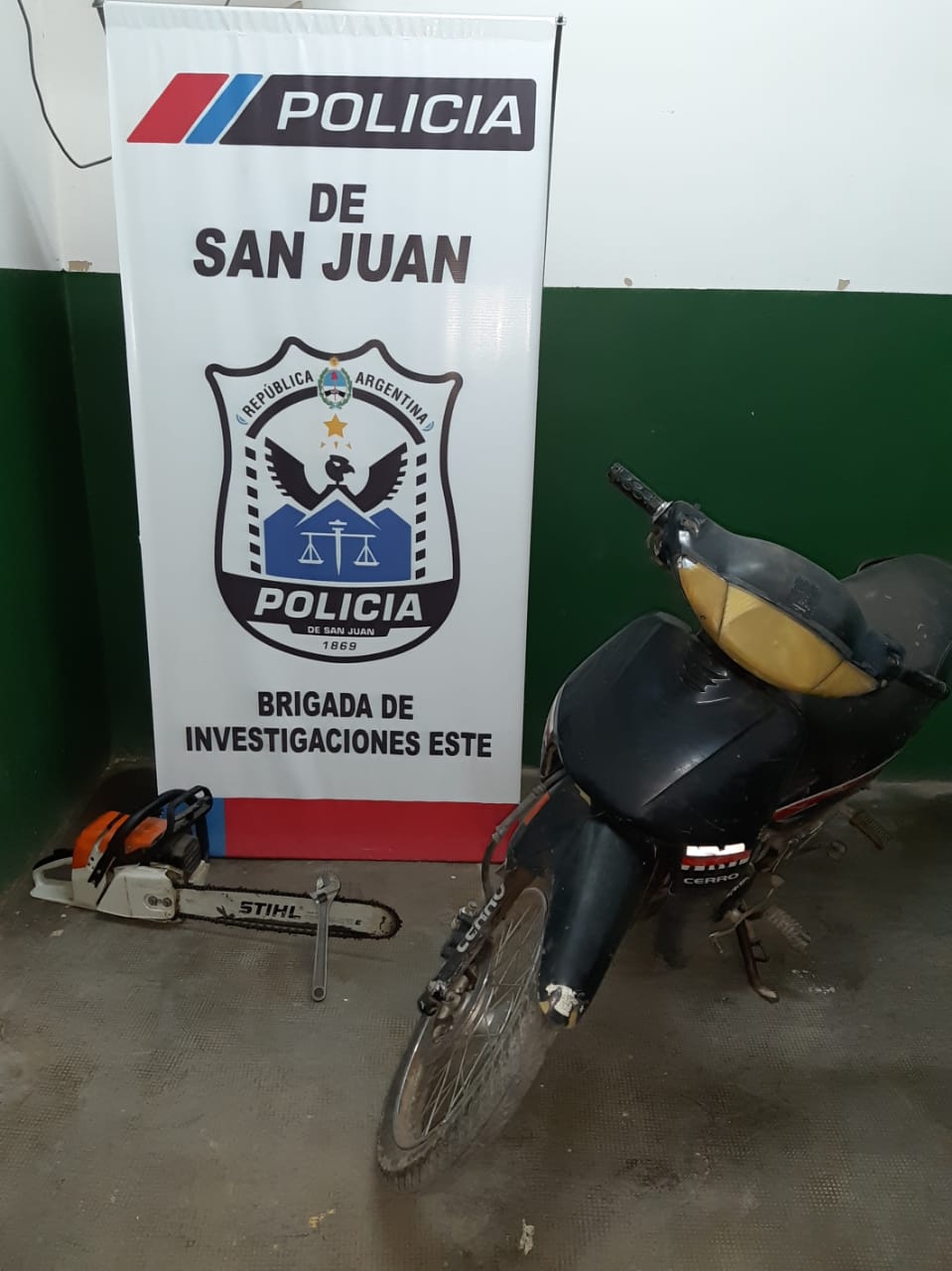 Por este motivo, realizaron un allanamiento en el domicilio de Angaco del sospechoso y dieron con una llave francesa, una moto Cerro 110cc y la camiseta del Xeneize. Además, un hombre que había comprado la motosierra la devolvió.