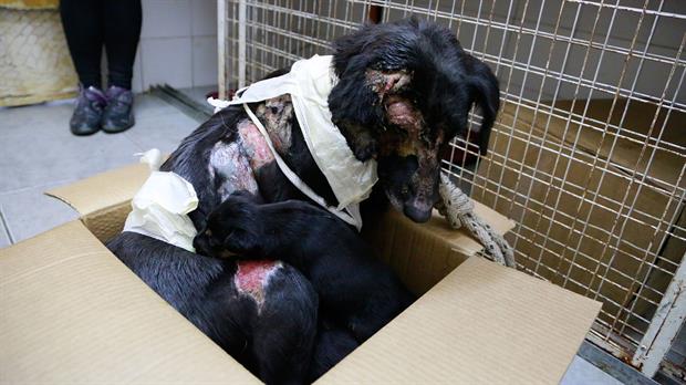 Sobrevivía -como muchos animales en su misma situación- en las calles de un barrio humilde de Merlo. Pero tenía hambre porque había parido a dos cachorros y necesitaba alimentarse para poder amamantarlos. Con la inocencia que caracteriza a los perros se acercó con la cabeza gacha a una casita a pedir comida pero la dueña del lugar se lo impidió y, para alejarla, le tiró aceite hirviendo. "Así la encontramos, con heridas y quemaduras en su lomo, en su cabeza y parte de uno de sus ojos. La imagen era desgarradora porque ella, con todo el dolor que uno puede imaginar, seguía amamantando a sus cachorros", recuerda Carolina, una de las voluntarias de Proyecto 4 Patas, una organización sin fines de lucro abocada a difundir, proteger y promover los derechos de los animales.
