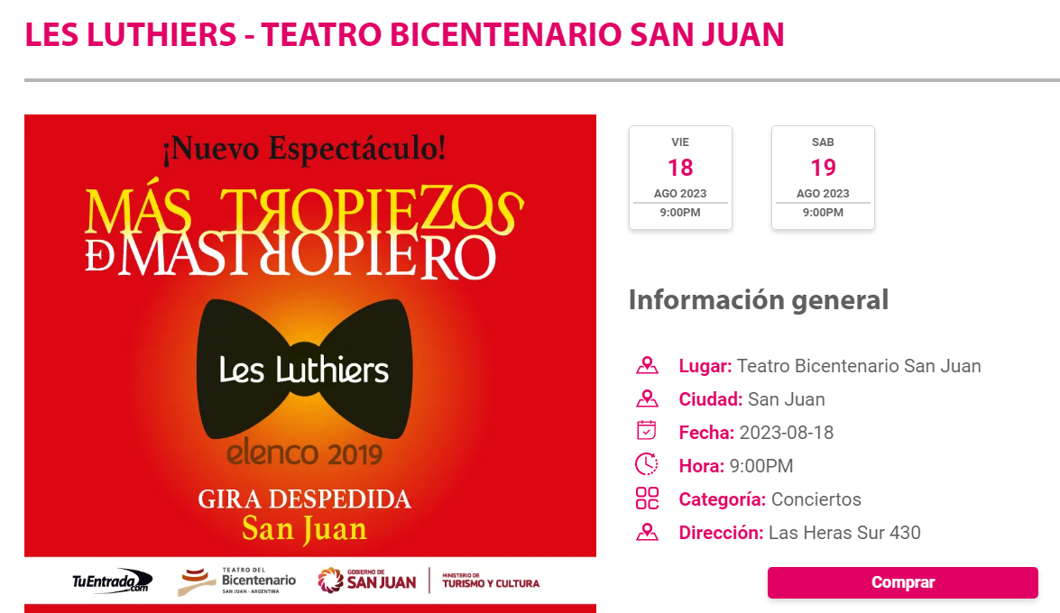 En enero pasado el mítico grupo Les Luthiers anunciaron que se despedirían de los escenarios luego de más de 55 años de trayectoria, con una serie de presentaciones en distintos puntos del país. Ahora, se espera su llegada al Teatro del Bicentenario, donde presentarán “Más tropiezos de Mastropiero”. Las funciones serán el próximo 18 y 19 de agosto en el coloso sanjuanino.
