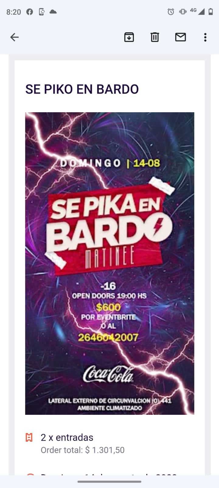 La matine de menores “PIKA EL BARDO”, se promocionaba en las redes sociales para el domingo a las 19 en el Boliche Coco Bongo, ubicado en Lateral de Av. Circunvalación entre Libertador San Martín y Av. Ignacio de la Roza, Capital.