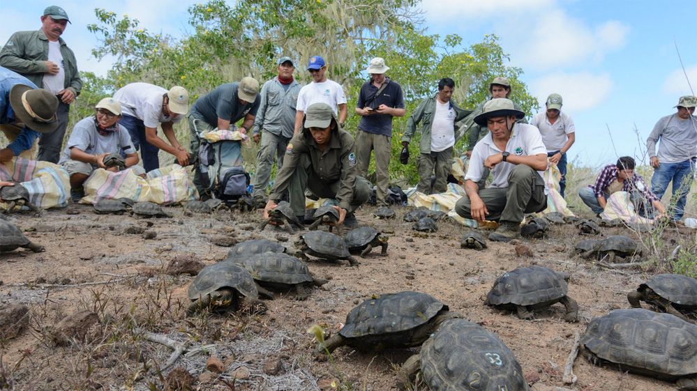 Tras una expedición que empezó a la madrugada del pasado lunes, se liberó en la isla Santa Fe a las tortugas gigantes, de 4 a 5 años de edad, en una operación que forma parte de la Iniciativa para la Restauración de las Tortugas Gigantes (GTRI).