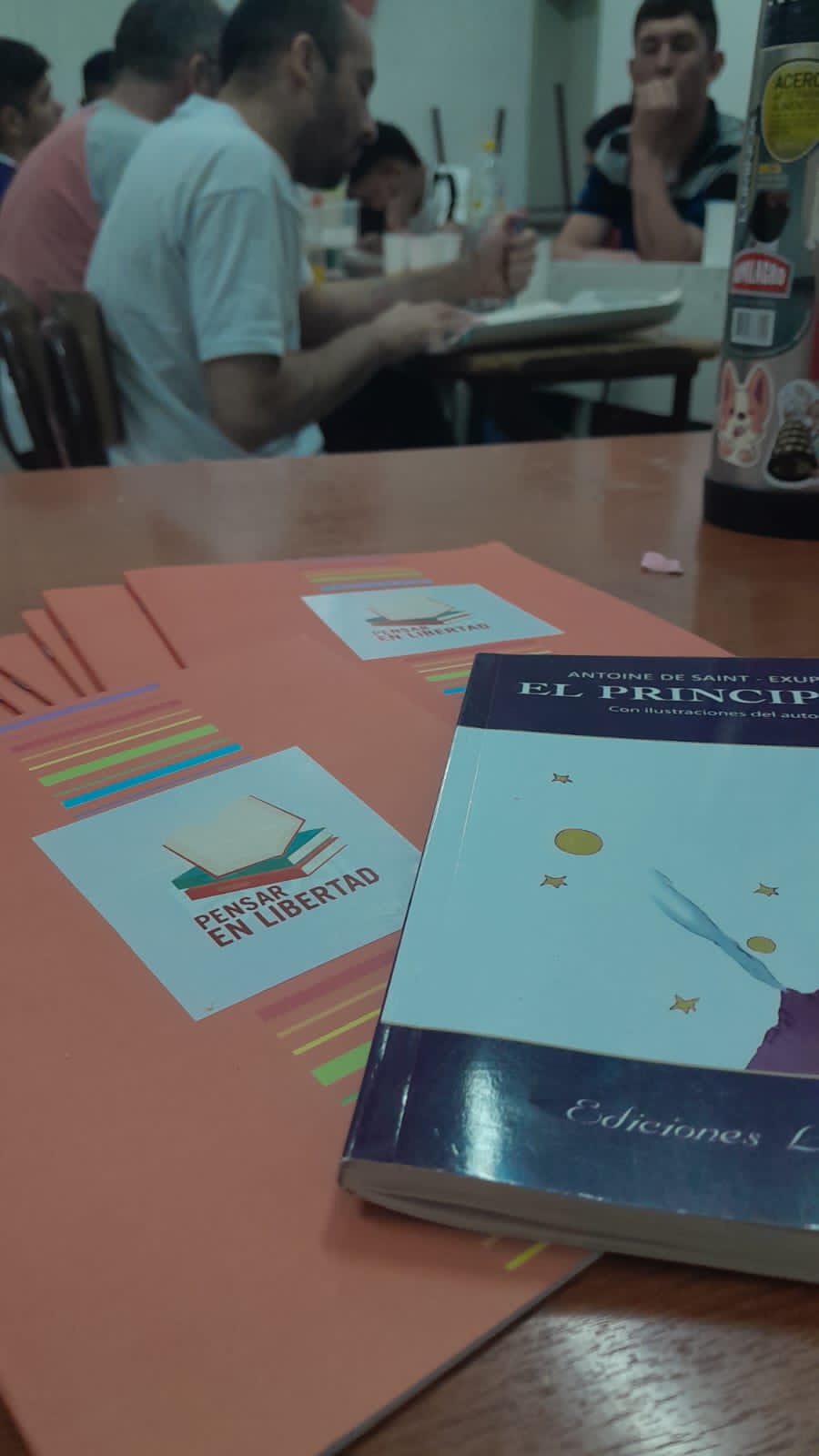 La sala de situaciones es el punto de encuentro. Hasta allí llega parte del grupo que le toca hacer el taller (se dividen para no ir todos), acompañados por un tutor y personal de Educación del organismo. En todos estos meses las actividades han ido cambiando permanentemente. Empezaron leyendo dos libros con muchos "mensajes". A algunos les costó más entonces les dieron nociones básicas -porque no son docentes- de lectoescritura. Otros presos que tenían más competencias educativas, fueron ayudándose entre sí, para llegar a la última página de "El Principito" y luego "El diario de Ana Frank", material que luego fue puntapié para proponerles hablar, reflexionar, escribir frases que les hayan generado inquietud y explicarlas. También han hecho pintadas, poemas escritos entre todos. El último jueves generaron una charla con los miembros de Liberté, una cooperativa literaria y de trabajo de presos de la cárcel de máxima seguridad de Batán, en Mar del Plata, con la intención de que les comentaran como se autogestionan para mantenerse cada uno y a sus familias.