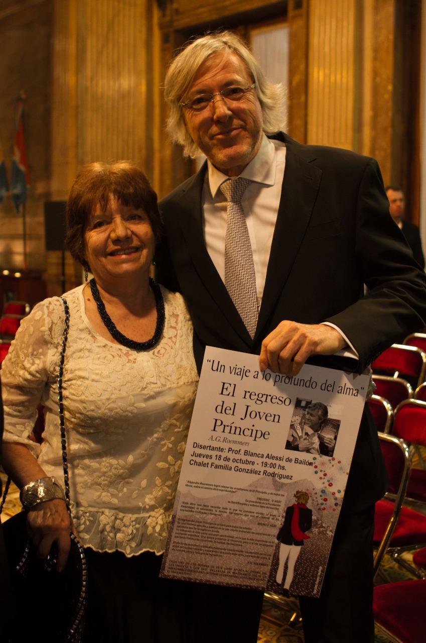 Alejandro Roemmers junto a Mabel González en una de sus últimas disertaciones.