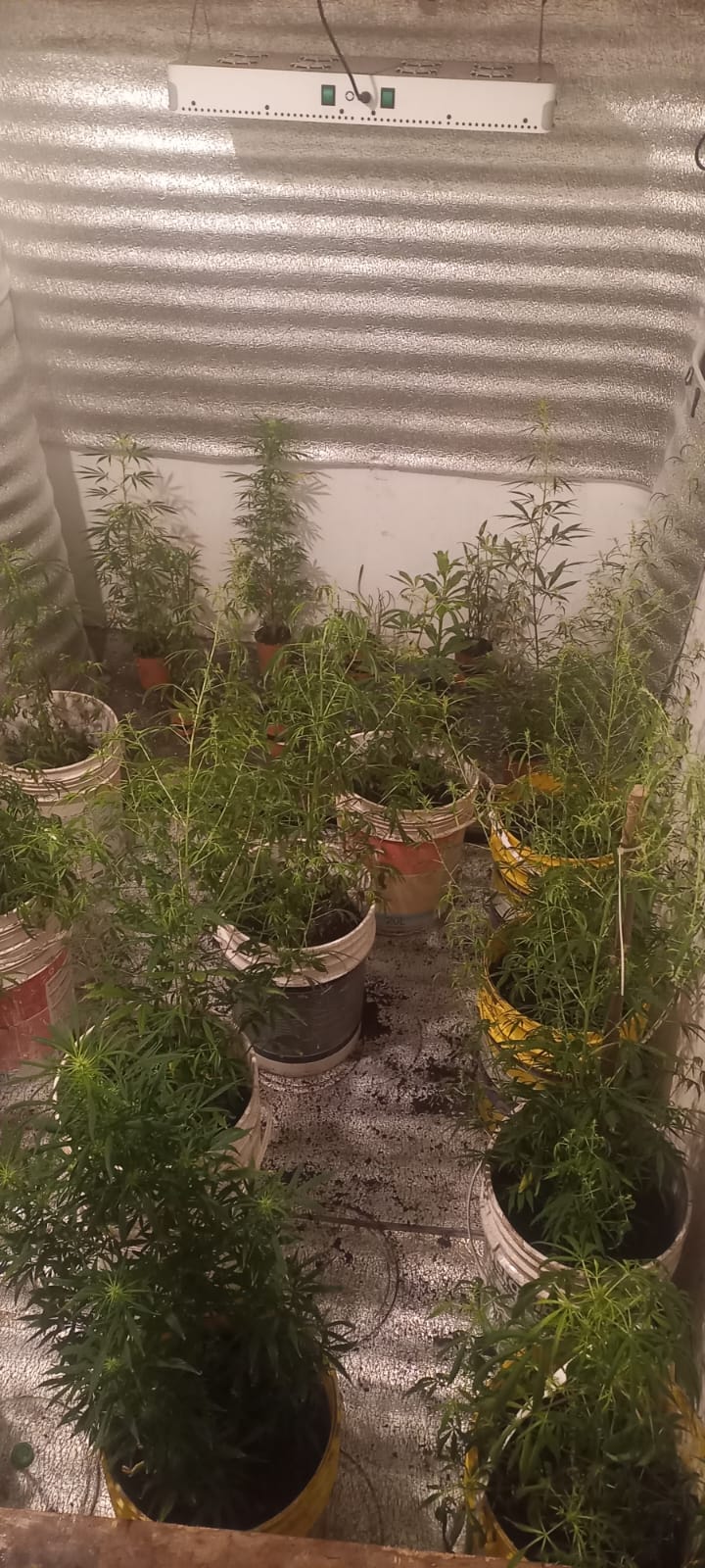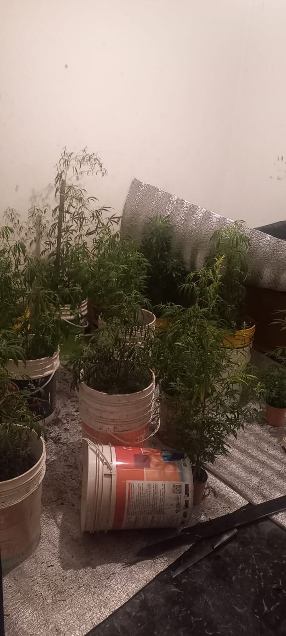 Gracias a la investigación para dar con el autor, se procedió al allanamiento de una vivienda ubicada cerca de Paraguay y Rawson, también en Capital. Para sorpresa de los uniformados, en el interior encontraron 28 plantas de cannabis. La habitación presentaba sus paredes revestidas con papel aluminio, también allí habían lámparas led.