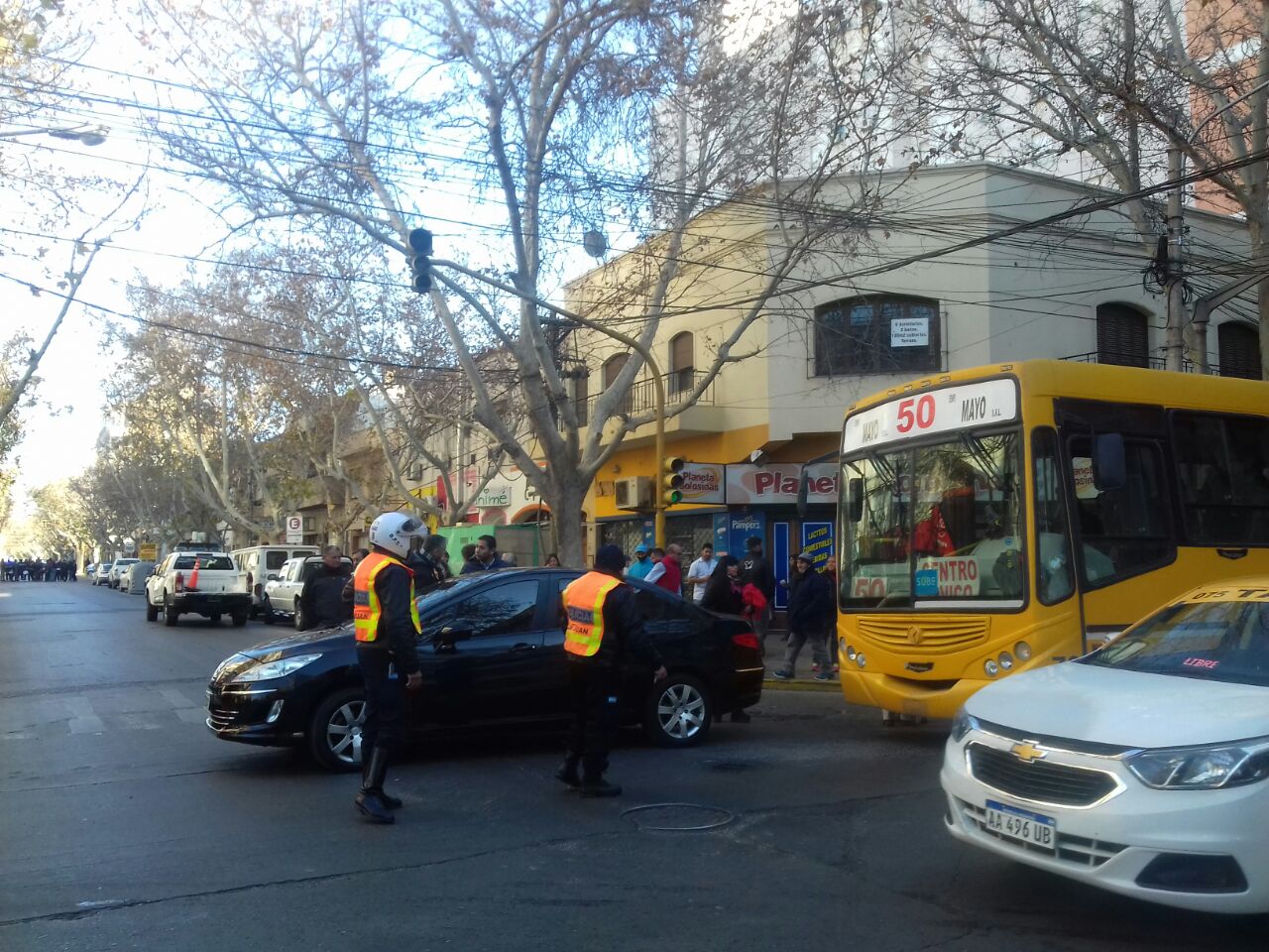 Pero, aparentemente, un mala orden del efectivo policial generó que un hombre que viajaba en un Peugeot 408 frenara de golpe de atrás viniera un colectivo de la Línea 50, de la empresa Mayo, y lo chocara.