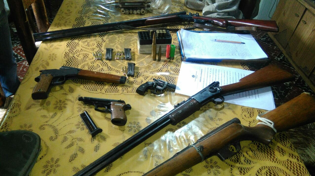 Un comerciante de 48 años fue detenido en su casa de la Villa Novoa, en Rawson, luego de ser denunciado por violencia de género y también porque durante el allanamiento realizado por policías de la seccional 5ta. al mando del comisario inspector Diego Rocha y el subcomisario Oscar Sombra, encontraron seis armas (algunas de guerra) y municiones de distinto calibre que no estaba autorizado a tener ni portar, dijeron fuentes policiales.