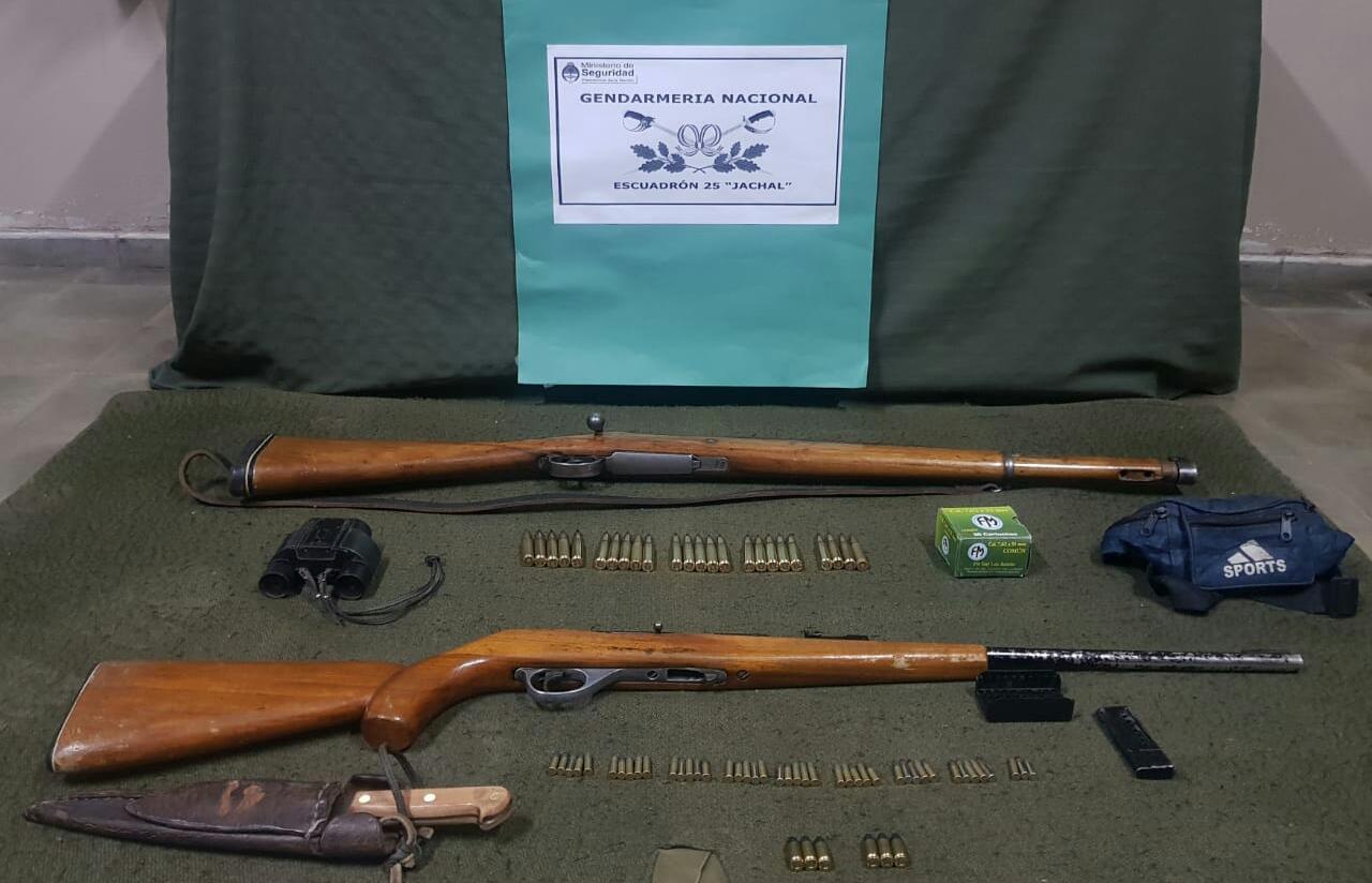 Un hombre que viajaba armado con un fusil, un rifle y gran cantidad de municiones fue atrapado por personal de Gendarmería en Jáchal. Le secuestraron todo y quedó detenido.