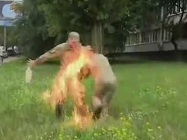El impactante momento fue grabado por uno de sus compañeros, mientras otros intentaban impedir que se prendiera fuego. Uno logra arrojar a Serhii Ulianovlo al suelo y en ese instante militares y bomberos lo asistieron extinguiendo las llamas.