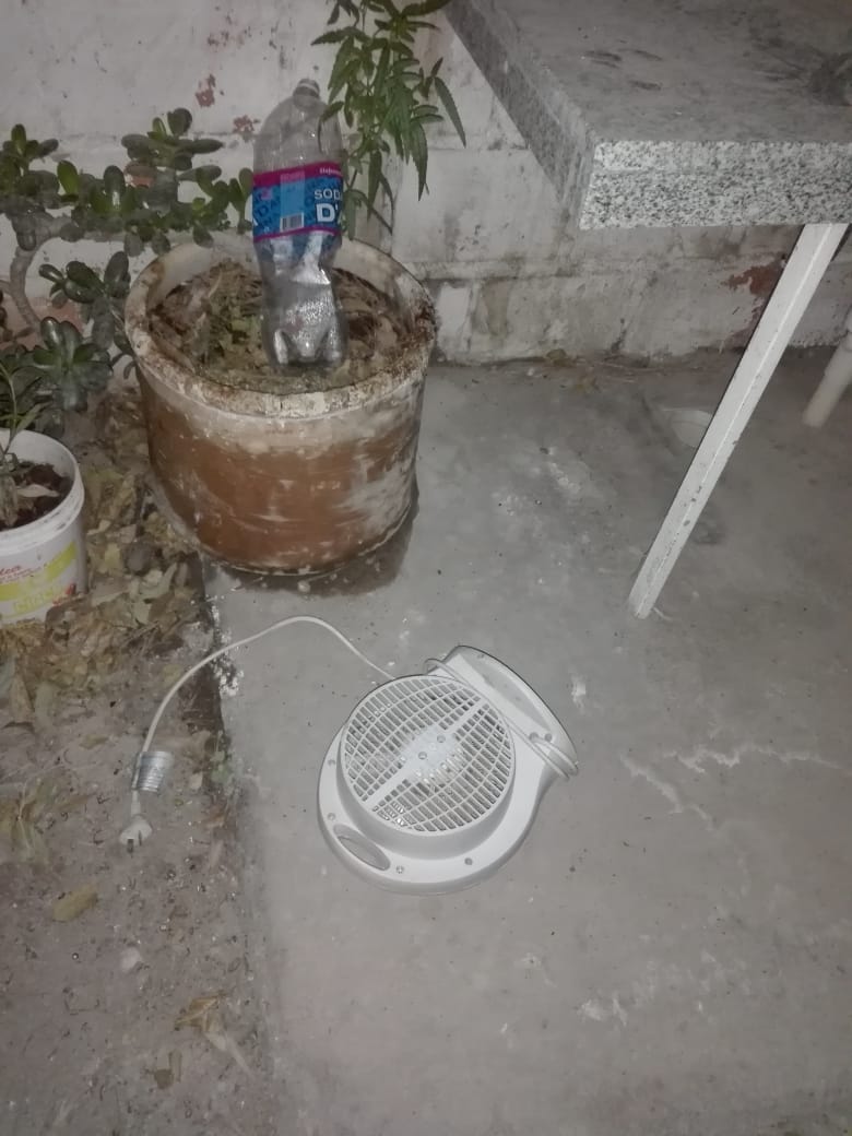 Momentos más tarde pudo corroborarse que Ortiz había roto la puerta de un contenedor (que cumple función de oficina) a la altura de la cerradura y, una vez dentro, había desenchufado una fotocopiadora dejándola al lado de la puerta con intención de llevársela. Luego, sacó el caloventor.