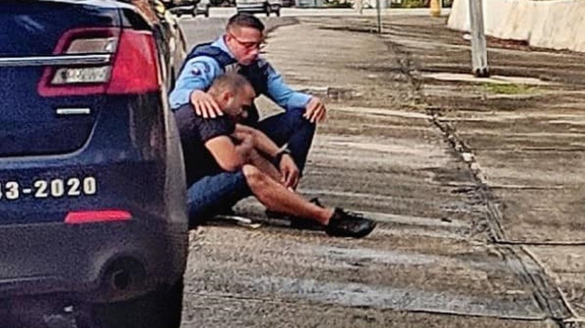“El policía estaba arrodillado al lado del caballero colocando su brazo sobre el hombro del detenido, hablándole pausadamente y consolándolo”, describió y dijo que se acercó para ayudar. “El caballero apenas levantó la mirada y no paraba de llorar”, agregó.