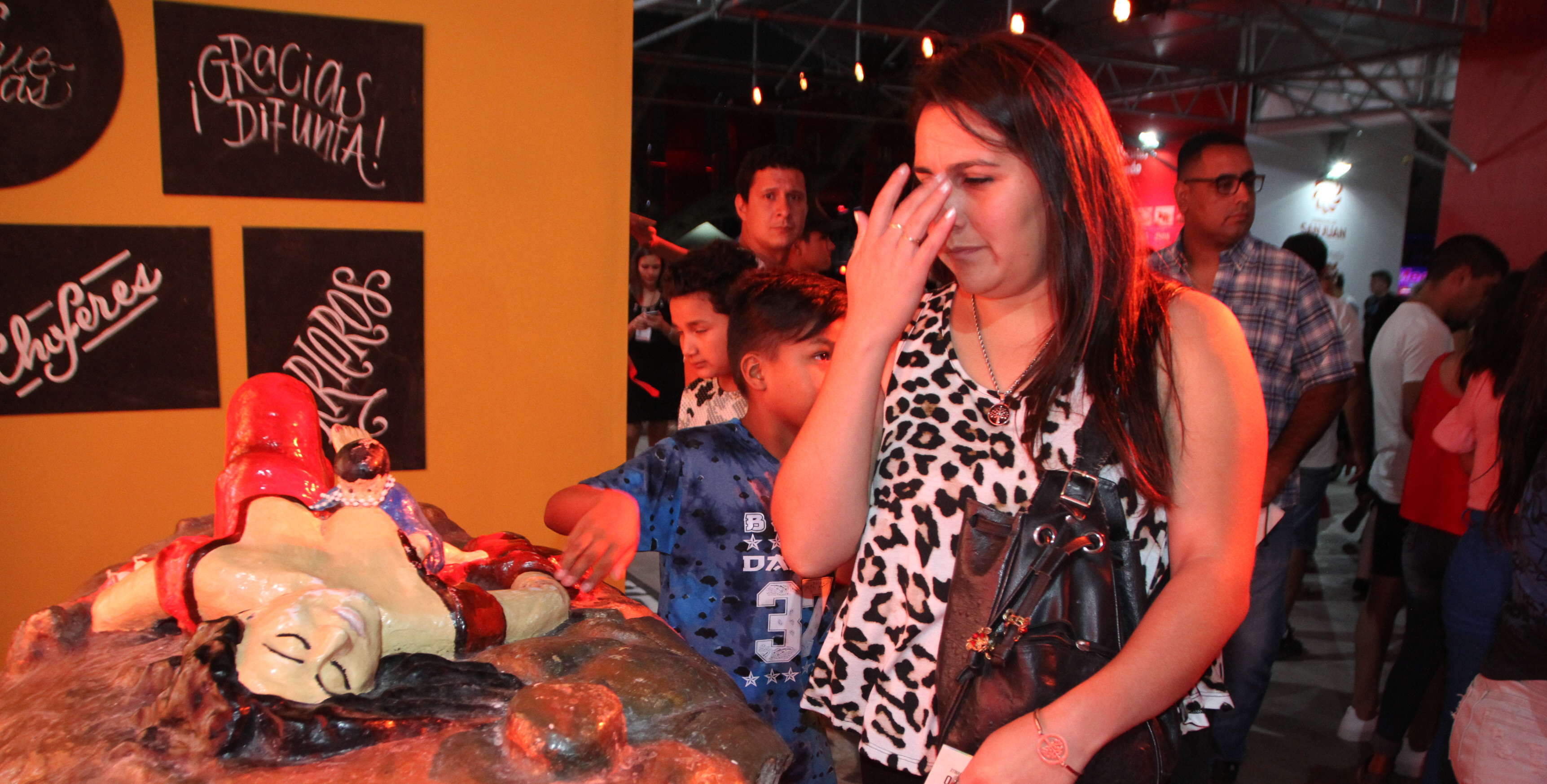 Las miles de personas que anoche asistieron a la apertura de la Feria y Exposición Temática de la Fiesta Nacional del Sol visitaron el stand dedicado a la Difunta Correa para tocar su imagen.