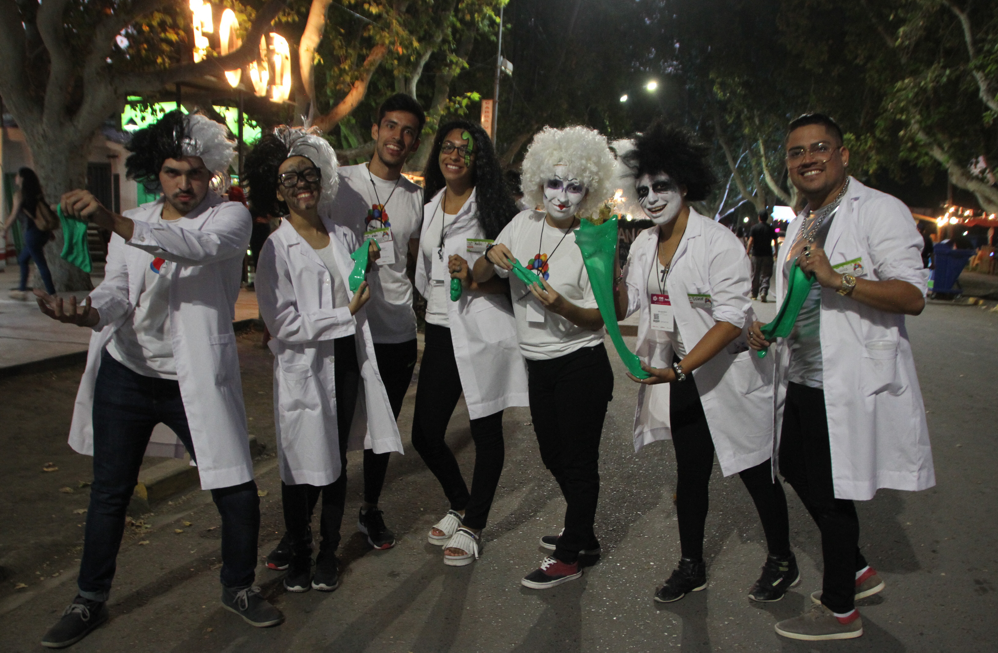 Los chicos de “Comparte” se disfrazaron para invitar a los chicos a pasar a su stand para hacer slime (masa elástica) para divertirse.