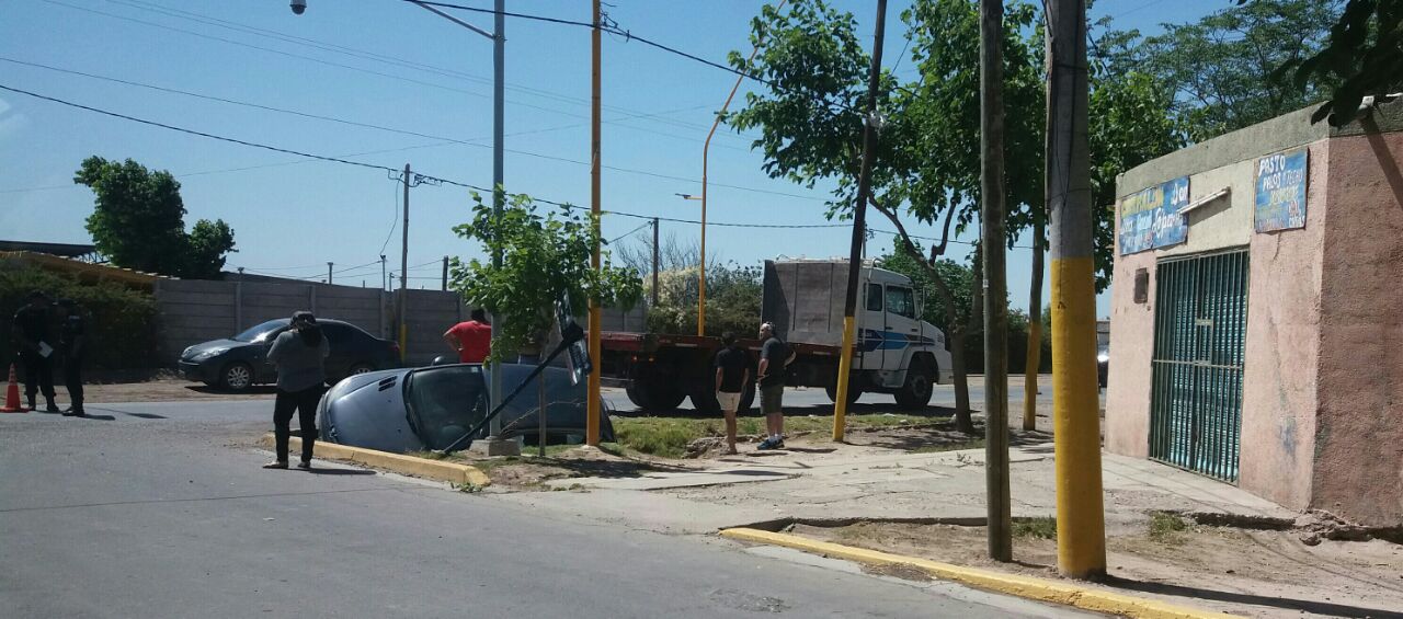 Los testigos del lugar indicaron que los vehículos protagonizaron un roce pero el auto terminó de lado en el cauce. Descartan que haya heridos.