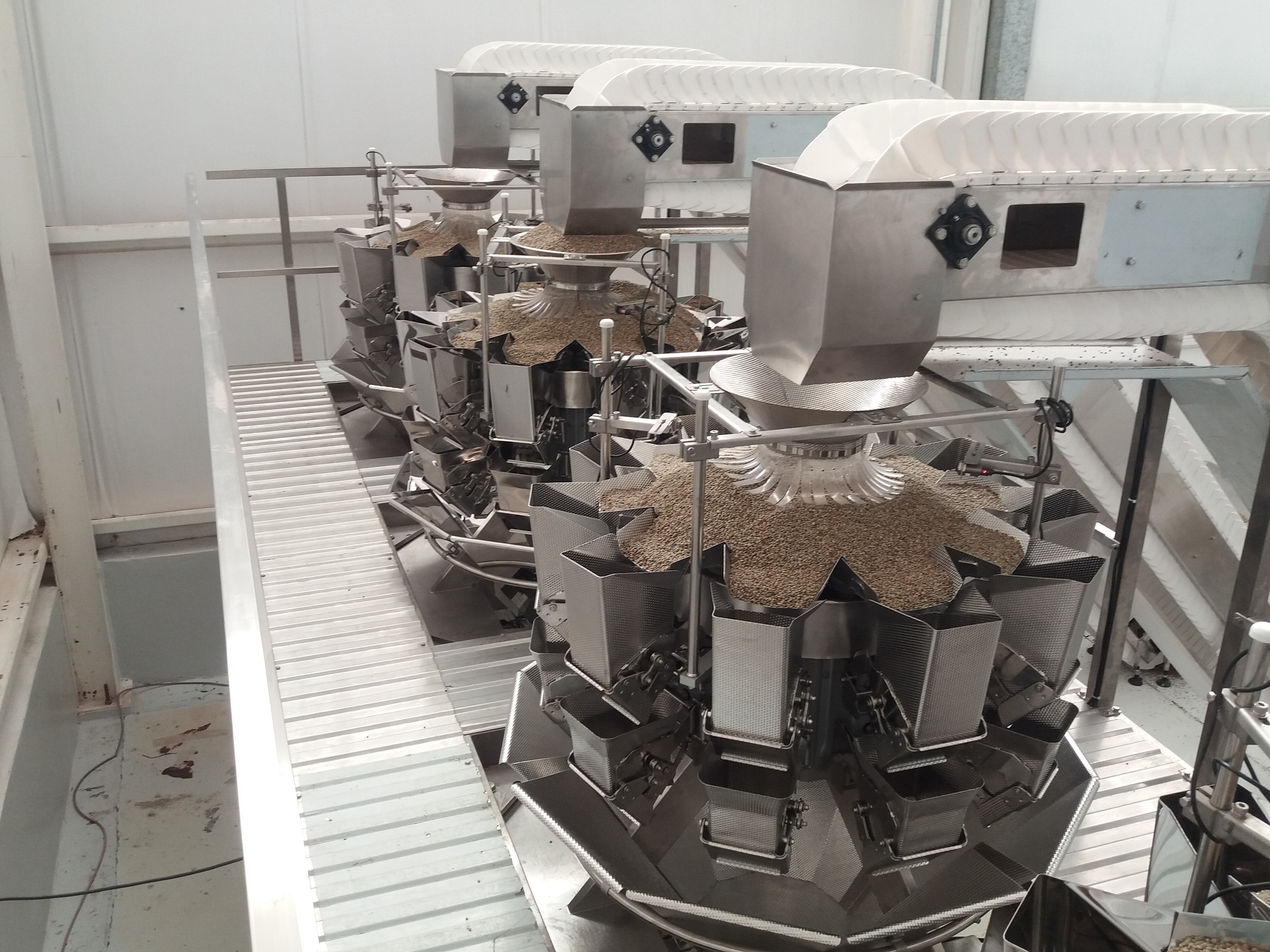 El gran desarrollo realizado por el ingeniero Mario Pino les permite fraccionar diferentes alimentos en paquetes de 25 gramos y hasta 1 kilo. Todos los procesos son registrados con trazabilidad informática y administrados con pantallas digitales. Es una línea multipropósito inteligente.