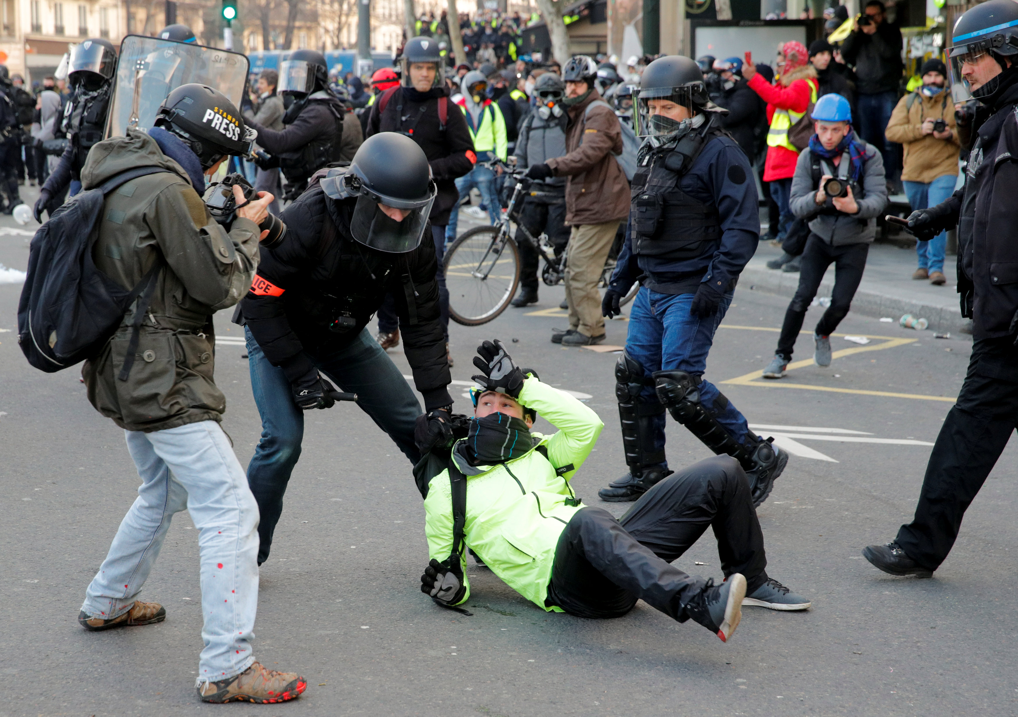 "Las pelotas de goma no se utilizan de manera correcta, por lo que queremos que se prohíban. Queremos destacar en esta protesta a los heridos, porque los medios de comunicación los ignoran", declaró Drouet, quien calculó más de 100 heridos en el ojo por los disparos policiales, algunos de ellos con lesiones irreversibles. "El Estado los ha dejado en total abandono", denunció el treintañero, quien estuvo en el origen de la organización de la primera gran protesta nacional del movimiento.