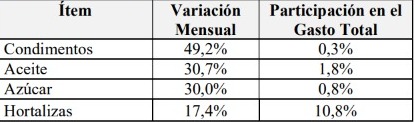 La Fundación para el Desarrollo Global (FUNDEG), dirigida por el economista Eduardo Coria Lahoz, determinó que la inflación del mes pasado en San Juan fue del 6,3%. Dentro del informe se detalló los alimentos que más aumentaron sus precios: condimentos, aceite, azúcar y hortalizas.
