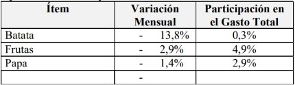 Los productos que más bajaron su precio en el último mes fueron: batata, frutas y la papa.