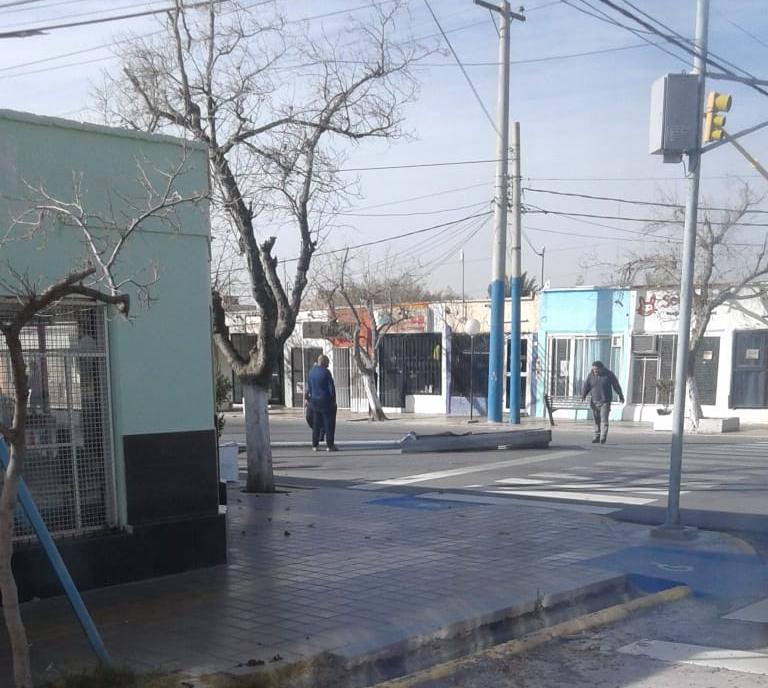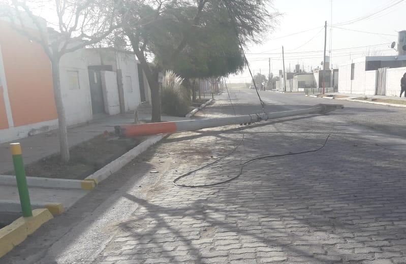Poste de alta tensión derribado al suelo en el barrio Pie de Palo, San Martín. Los vecinos informaron que escucharon dos explosiones producto de los cables cortados.