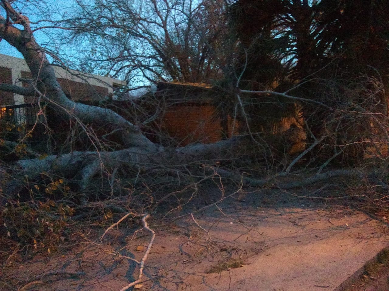 Un árbol cayó terriblemente . Según informaron transeúntes, varios autos pudieron salir airosos. Hay cortes de enegía y la policía trabaja en el lugar. El árbol está ubicado en calle Cura de las toscas y Maestro Anea, Albardón.