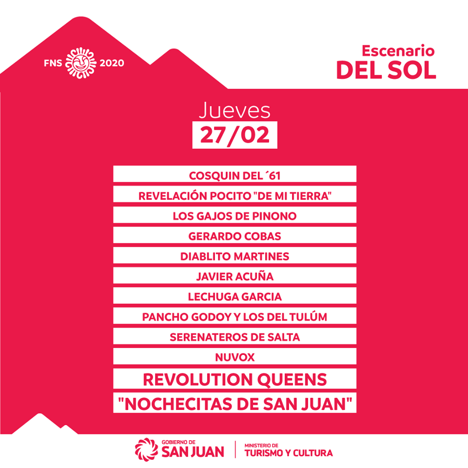 Este jueves, San Juan vivirá la tercera noche de la Fiesta Nacional del Sol 2020, en el Complejo Costanera, en Chimbas. Como todos los días, las puertas abrirán a las 19.