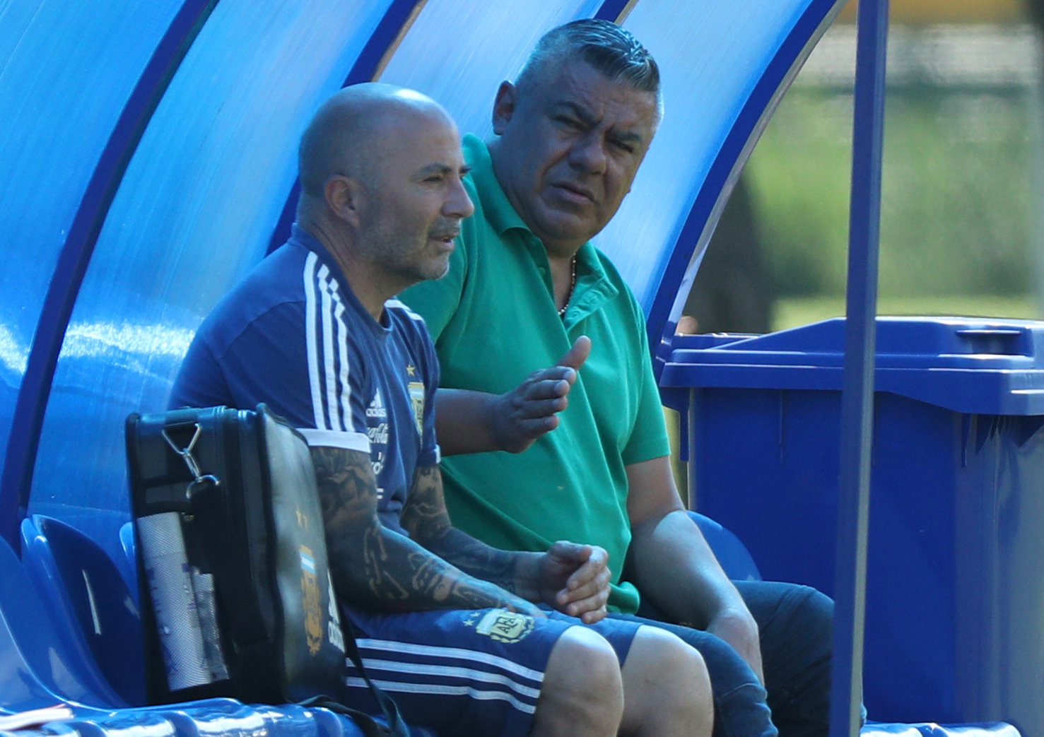 Mayo pasado: "Banco a Sampaoli aunque Argentina no pase la primera ronda del Mundial. Ya lo hablé con él. Tiene contrato por cinco años, y lo pensamos en lo que le falta al fútbol argentino: un proyecto". Textual de Claudio Tapia, el presidente de la AFA. El sanjuanino se encuentra preso de sus palabras y, sobre todo, del increíble contrato millonario que le firmó al entrenador, cuya destitución unilateral del lado de la AFA costaría una fortuna. Pero la decisión de Chiqui, acompañada por el vice y presidente de Boca Daniel Angelici, parece tomada: que el Pelado no siga en la selección. Una idea totalmente opuesta al DT quien fue claro en la conferencia poseliminación ante Francia: "No evalúo renunciar", ponderó y según se conoció ayer a sus íntimos les habría dicho algo como "la guita me la van a tener que pagar; a estos (los dirigentes) no les voy a regalar nada".