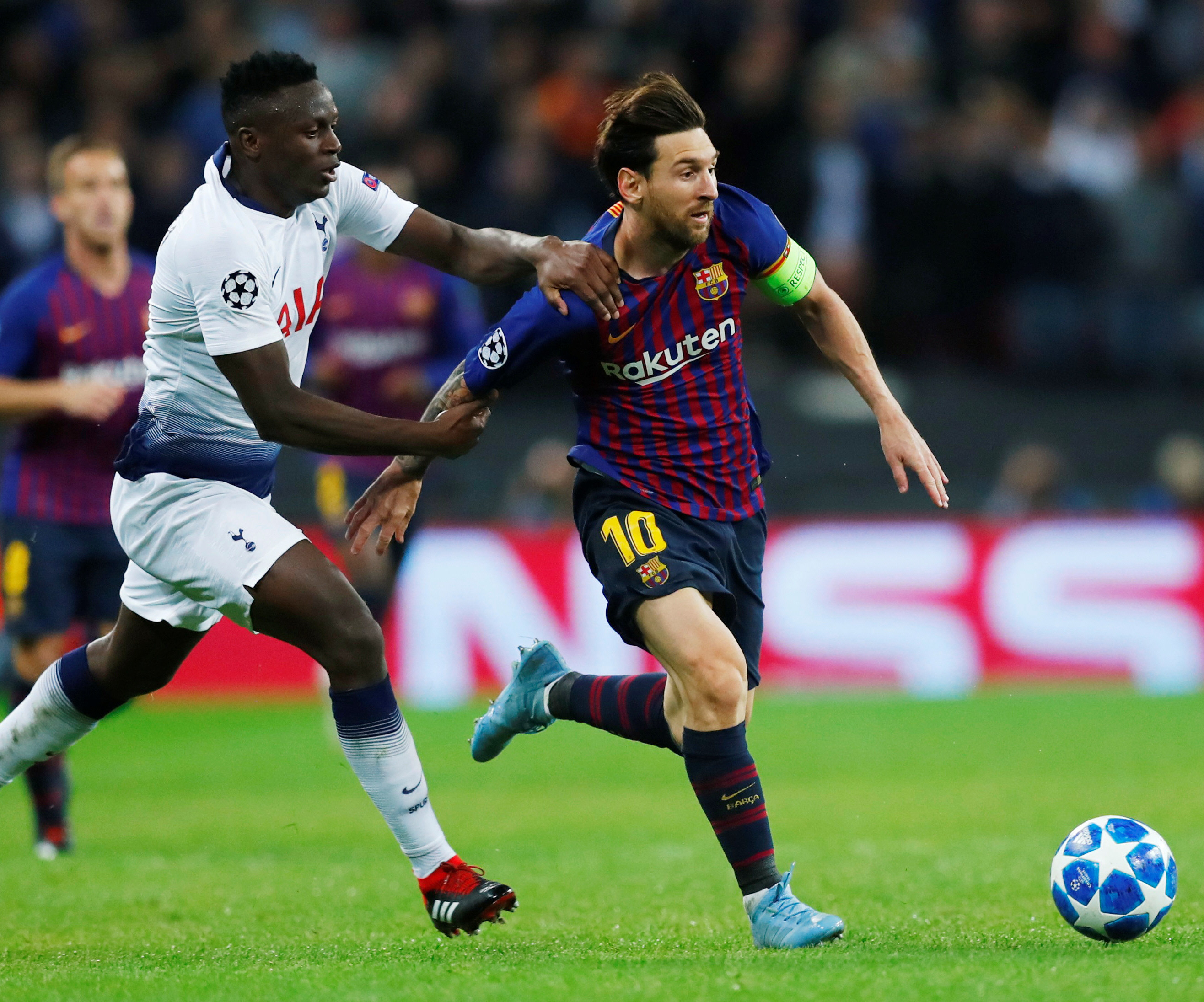 No lo pueden parar. Lionel Messi le escapa a la marca de un jugador del Tottenham inglés. El Barcelona no perdonó y le metió cuatro a los ingleses, con dos pepas del rosarino.