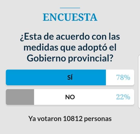 En este sentido, los lectores de DIARIO DE CUYO, aprobaron con un 78% las medidas que informó Uñac vía youtube. Un total de 10.812 personas participaron de la consulta y de ese número, sólo un 22% no estuvo de acuerdo con lo que comunicó el gobernador.