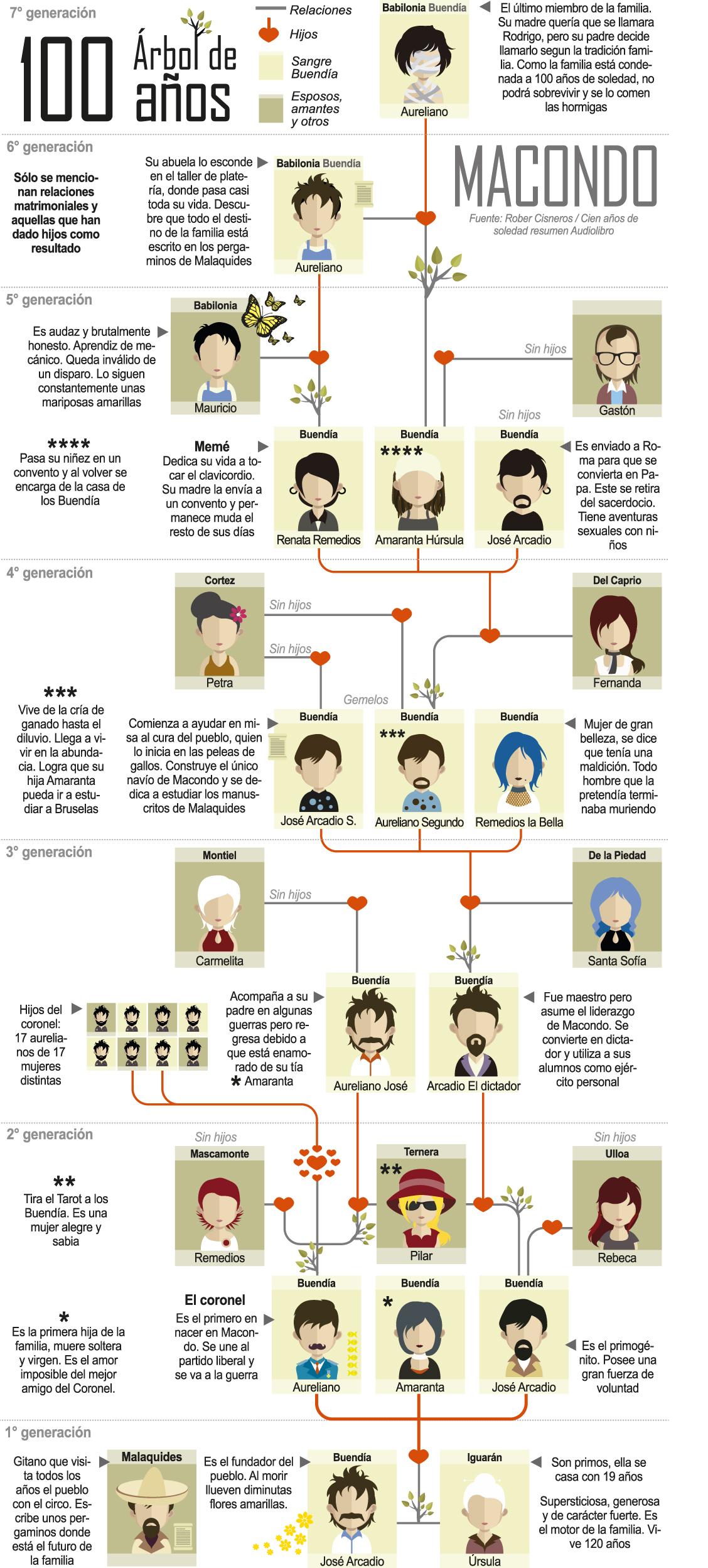 En el viejo castaño de la familia Buendía, el primer José Arcadio contemplará cómo el tiempo circula y se repite. Descubriremos que la tierra es redonda como una naranja. Veremos el ferrocarril que viaja como un enorme féretro,ocultando la siniestra masacre de la bananera UnitedFruit Company, que todos juran no haber visto.