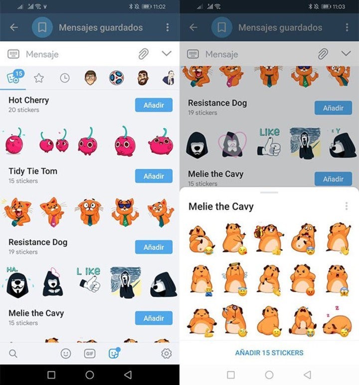 Debido al carácter de acceso libre de la plataforma de los stickers en movimiento cualquiera podrá subir la colección que desee y estarán disponibles para el resto de usuarios de Telegram y así se irá ampliando el catálogo.