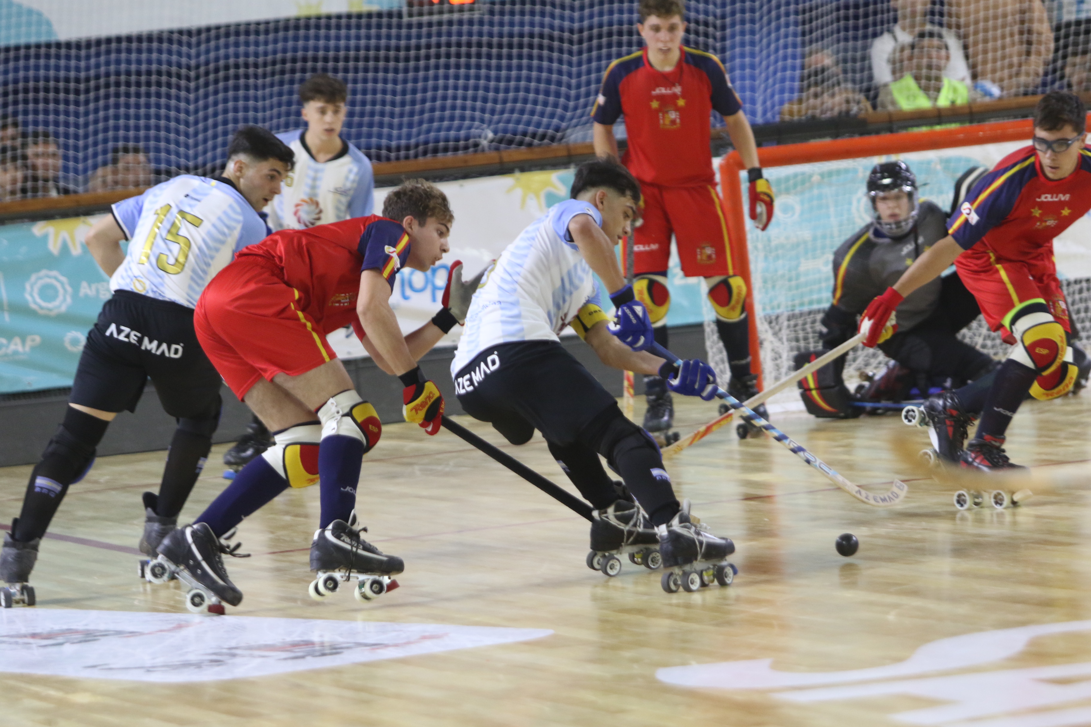 En un partido que estuvo a la altura de las enormes expectativas que dominaban el ambiente de un colmado Aldo Cantoni, el seleccionado argentino venció por 5 a 3 en tiempo suplementario a su par de España y clasificó a la final del Mundial de hockey sobre patines sub 19 masculino, que se disputará este sábado desde las 19,30 en el mismo escenario, contra Italia.