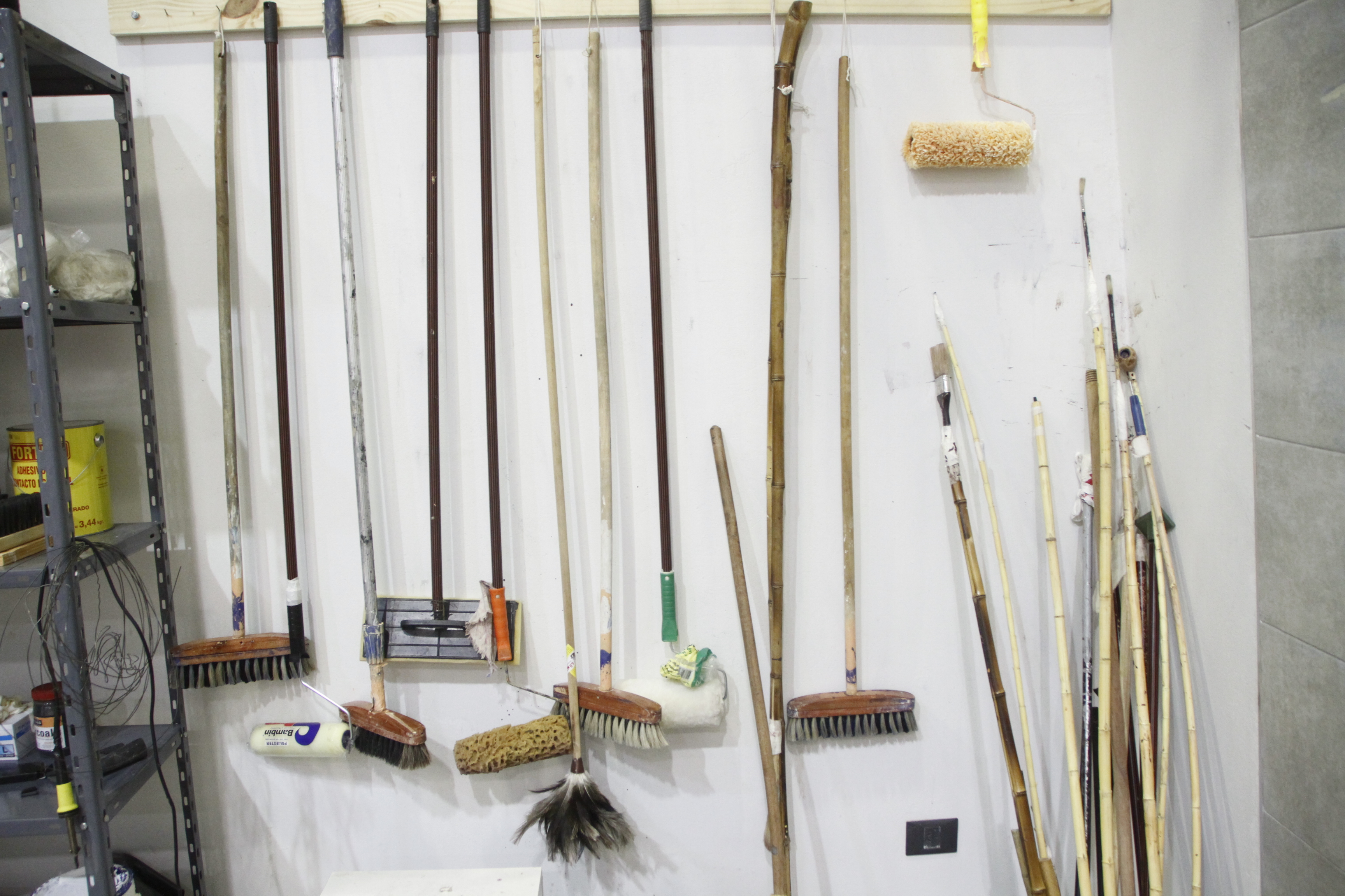 "Yo creo que ya puedo irme y terminarían sin mí" comentó a DIARIO DE CUYO Ahmer, que es sincero al contar que cuando comenzó con el grupo -elegido entre unos 40 aspirantes- estaba todo el tiempo diciendo "no, no haga eso, no haga aquello", y hoy se siente confiado en cómo se están realizando los telones que con la cantidad adecuada de pintura, humedad y técnica "pueden durar 50 años", comentó Gunnar. Aunque bromea que no quiere "develar todos los secretos", el artista mostró entusiasmado los elementos que usan para pintar comprados en una ferretería local. Escobillones, plumeros, rodillos de pintor lisos y otros a los que quitaron pequeños pedacitos de la goma espuma para dar textura , pinceles de pintura de obra atados a cañas o incluso en un barral de ducha. También hizo construir una especie de carritos o cajones de madera para poner dentro las latas de pintura que se usan en distintas partes del mundo, uno es como el usado en el Teatro Colón, otro, modelo USA. "No quiero que tengamos latas de pinturas en el piso porque si se cae una gota arruina todo" explica, y aunque parezca una obviedad, es un cuidado necesario.