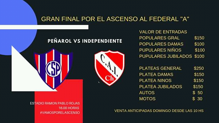 El encuentro de ida será el 9 de junio en el estadio Ramón Pablo Rojas desde las 16 y ese mismo día estarán a la venta a las entradas. Desde el bohemio informaron los precios de los tickets: