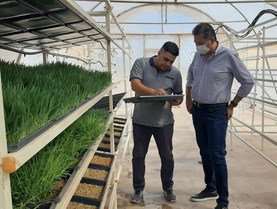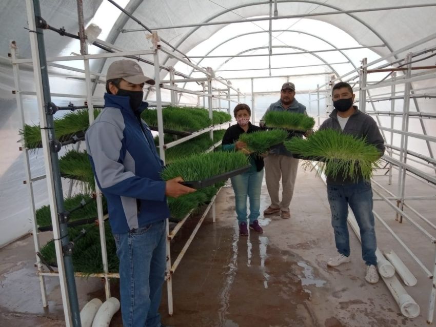 Los cultivos hidropónicos son estratégicos para la gandería del árido de los pueblos originarios. El ministro Fabián Aballay visita uno de los emprendimientos ganaderos desarrollados.